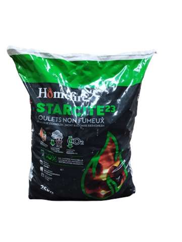 Le Starcite est en fait du charbon défumé sous forme de boulets. Ils sont conçus grâce a de fines particules de charbon.